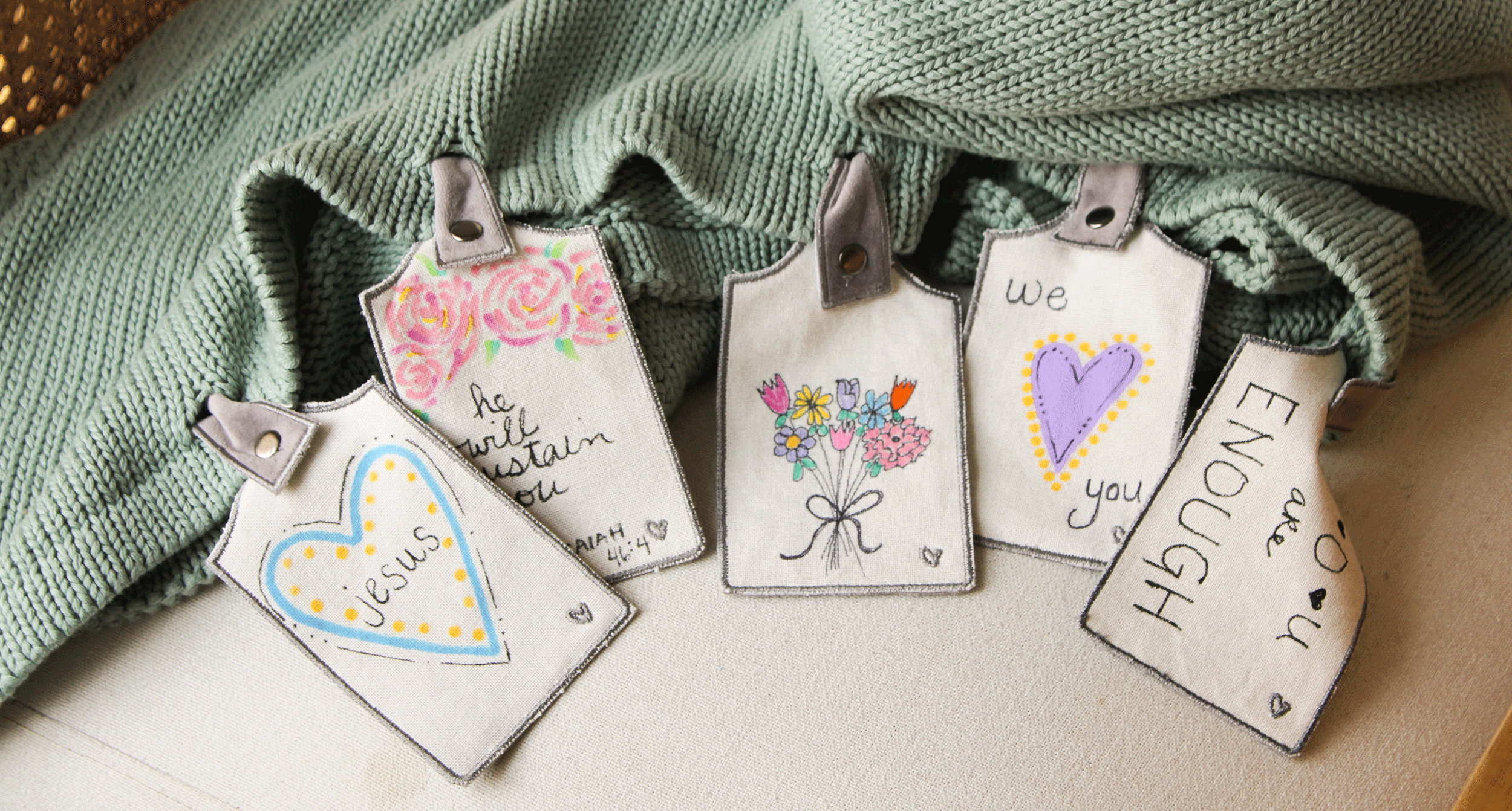 More than anything, I wanted her to feel covered in love and prayers every single minute. So I bought a beautiful cozy blanket, and made some fabric tags to write on and attached them to the blanket. I had friends, family, and our small group from church write notes of encouragement, prayers, bible verses, even funny memories on the tags, so when she was using the blanket, she would always feel wrapped in love even when I couldn’t be there in person.
